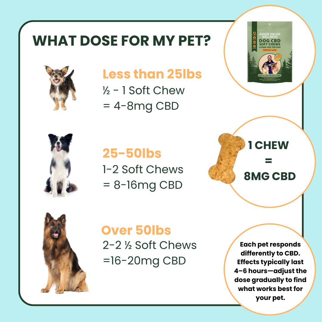 CBD Soft Chews deliver a precise dose of premium full-spectrum CBD to help your pet unwind, ease tension, and support joint comfort—so they can relax, play, and rest peacefully.